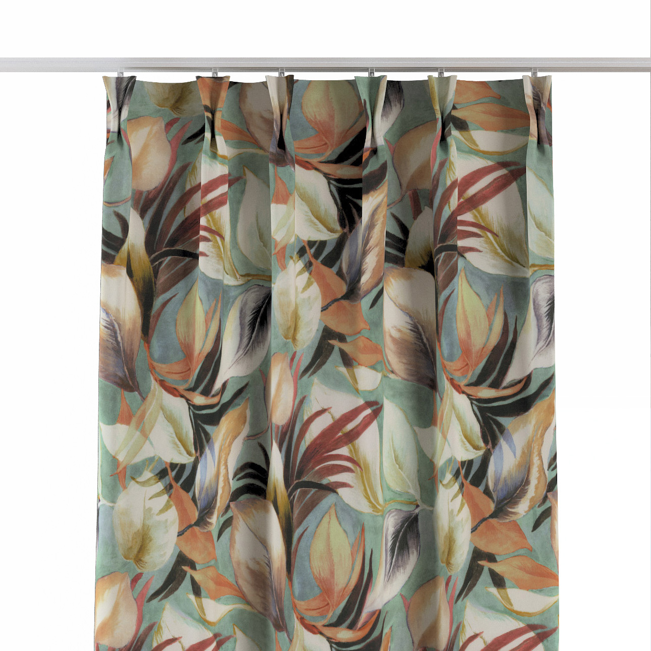 Záves so systémom FLEX (dvojité spony flex), oranžovo-gaštanovo-žlté listy na pozadí mäty, Abigail, 143-61