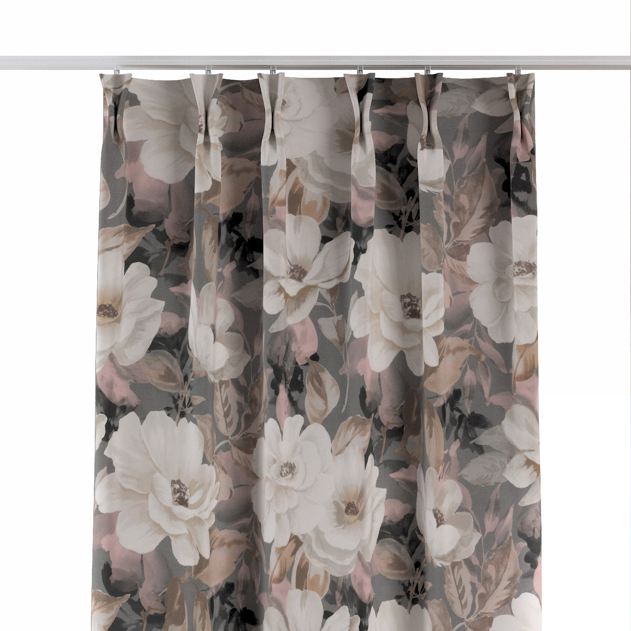 Záves so systémom FLEX (dvojité spony flex), svetlé kvety na sivom podklade so svetlo ružovou a béžovou, Gardenia, 142-13