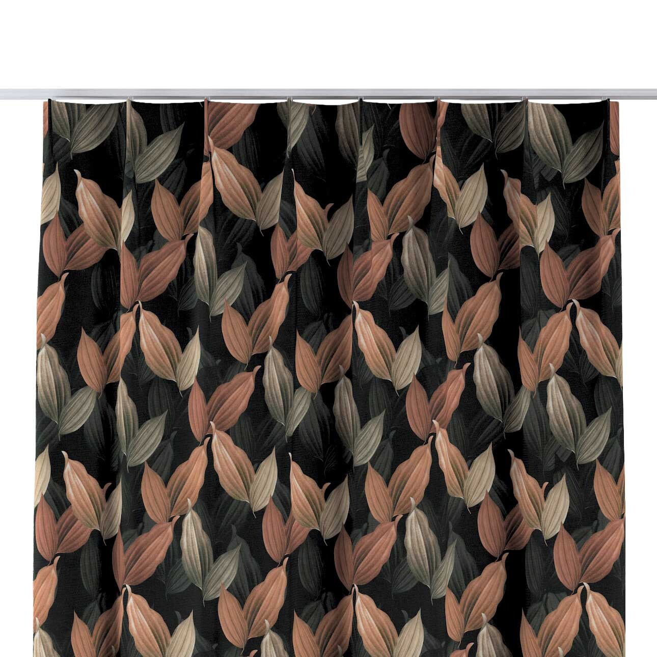 Záves so systémom FLEX (jednoduché spony flex), borskyňovo – hnedé listy na čiernom pozadí, Abigail, 143-21