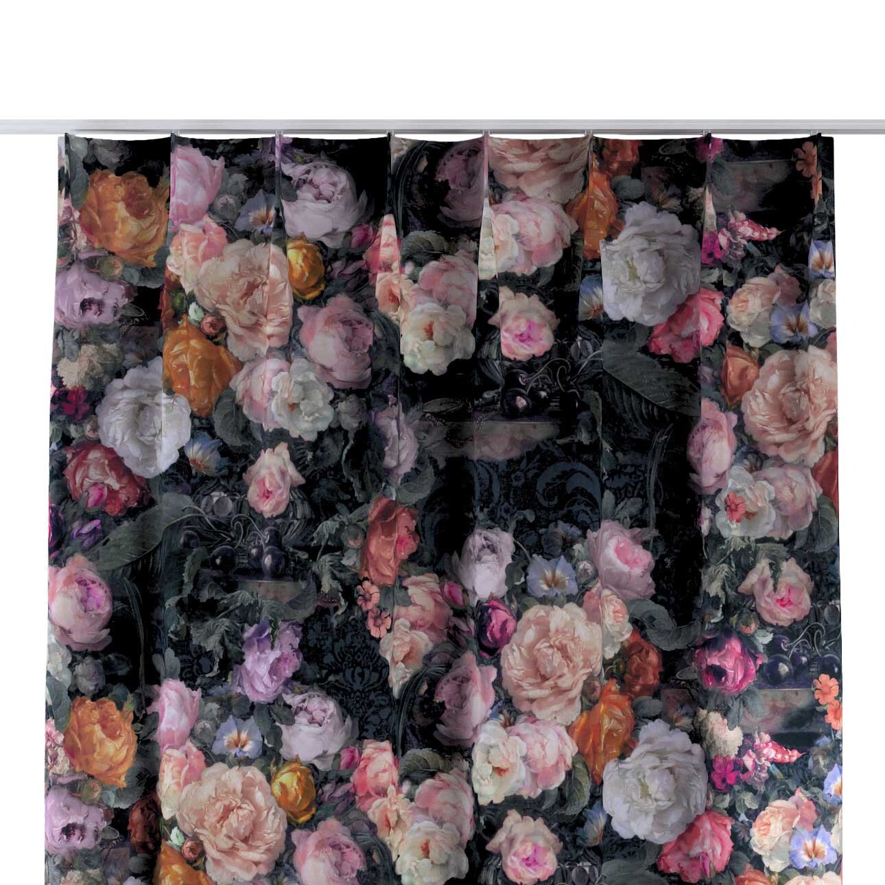 Záves so systémom FLEX (jednoduché spony flex), farebné kvety na tmavom pozadí, Gardenia, 161-02