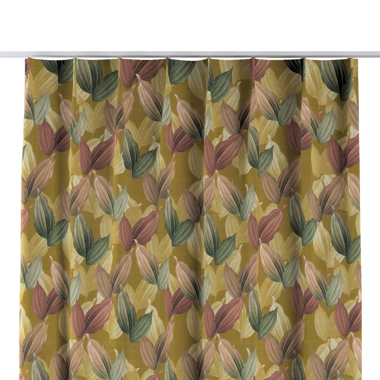 Záves so systémom FLEX (jednoduché spony flex), farebné lístie na horčicovom podklade, Abigail, 143-22