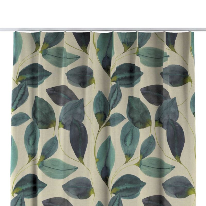 Záves so systémom FLEX (jednoduché spony flex), smaragdovo – zelené listy s fialovým nádychom na plátne, Abigail, 143-15