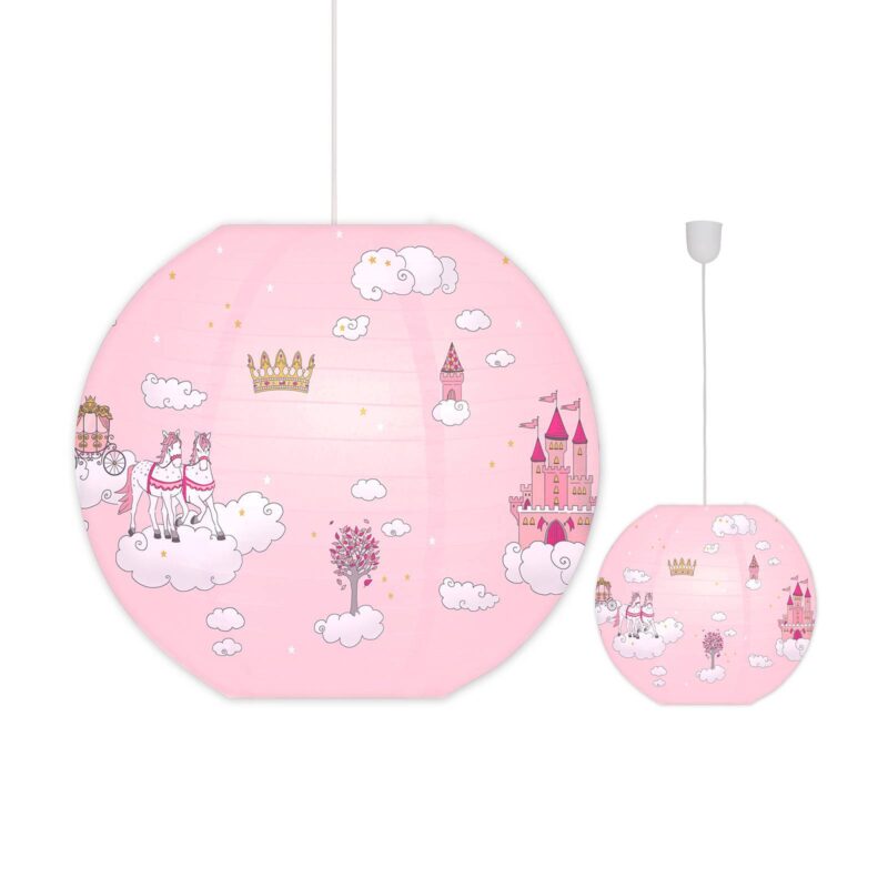 Splňte si kráľovské sny pomocou závesného svietidla Princess 4117004 S visiacim svietidlom Princess sa stáva majestátnym. Vďaka početným motívom na tienidlo na lampu nezostávajú nesplnené žiadne priania malých princezien. Celá v ružovej farbe, s jednorožcami a hradom v oblakoch, lampa plní typické dievčenské sny. Lampa je vyrobená z papiera, čo zaisťuje obzvlášť skvelé svetelné momenty. Izba je dostatočne osvetlená, a napriek tomu svetlo vyzerá trochu tlmene a neprekvapuje. S touto lampou môže fantázia ísť na cestu.