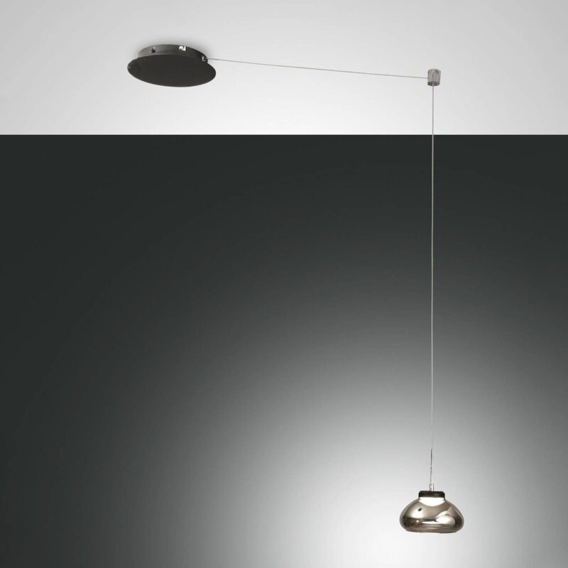 Závesné LED svietidlo Arabella so sivým priehľadným tienidlom a decentralizovaným zavesením Táto LED závesná lampa má jednoduché, ale moderné tienidlo na lampu zo šedo-priehľadného fúkaného skla. Je pripevnený ku kovovému káblu lampy, ktorý je možné variabilne umiestniť vďaka štyrom otvorom v kryte. Súčasťou dodávky je deflektor, ktorý je pripevnený k stropu v určitej vzdialenosti od vrchlíka a umožňuje tak decentralizované zavesenie. Vďaka teplému bielemu svetlu zaručuje Arabella príjemnú atmosféru. Je stmievateľný, a preto sa dá flexibilne použiť. Táto lampa je obzvlášť efektívna v obývacej alebo jedálenskej časti. – Stmievateľné pomocou predného alebo zadného stmievača
