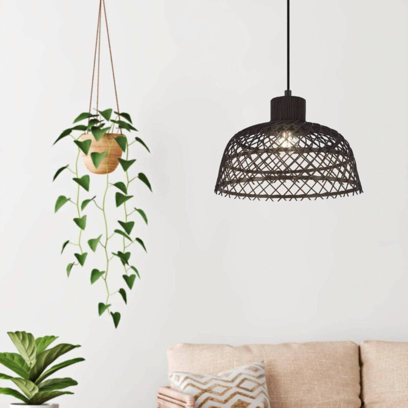 Závesná lampa Ausnby z dreva, čierna