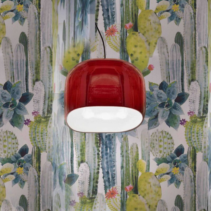Závesná lampa Ayrton, keramika dĺžka 29 cm červená