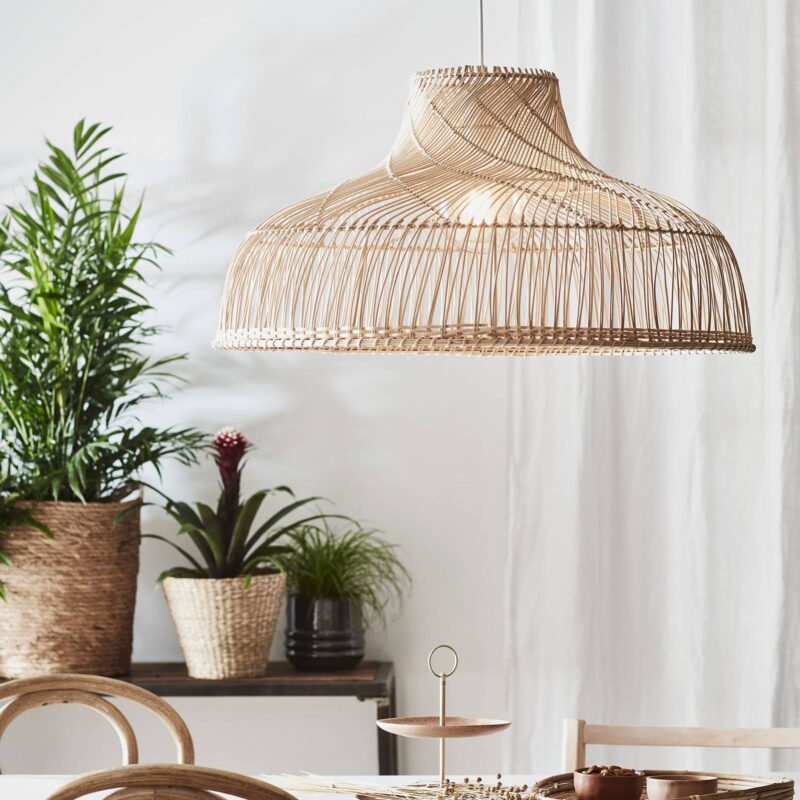 Závesná lampa Bali s ratanovým tienidlom