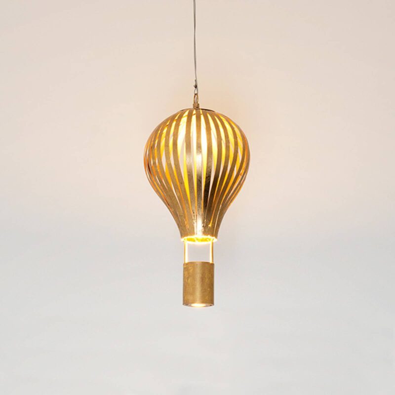 Zlatá závesná lampa Balón Piccolo vyrobená z kovu Zlaté závesné svietidlo Balloon Piccolo vychádza z dizajnu teplovzdušného balóna. Košík aj okrúhle telo sú vyrobené zo zlata. To dáva celkovému obrazu mimoriadne vysokú kvalitu. Závesná lampa má dva svetelné zdroje. Vo vnútri balónika, ako aj v košíku je LED. Vďaka zlatému kovu sa to odráža tak, že vznikne obzvlášť krásny efekt lesku.