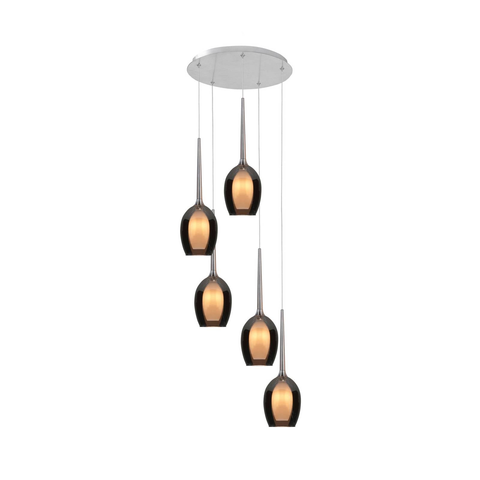 Závesná lampa Belle: elegancia v dymovo sivej farbe a nikel pre štýlové osvetlenie Objavte závesnú lampu Belle, ktorá vďaka dymovo sivému sklu a niklovým akcentom vnesie modernú eleganciu do každej obývačky, jedálne alebo spálne. Konštrukcia s 5 svetlami zaručuje rovnomerné rozloženie svetla, ktoré miestnosť zalije príjemnou atmosférou. Hoci stmievač nie je súčasťou balenia, jas sa dá individuálne nastaviť pomocou externého stmievača a vytvoriť tak požadovanú náladu. So závesným svietidlom Belle sa svetlo stane fascinujúcim dizajnovým prvkom vášho interiéru.