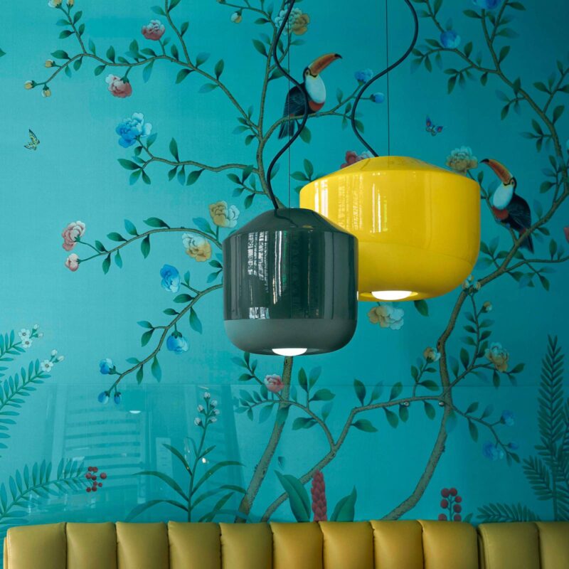Závesná lampa Bellota z keramiky, Ø 35 cm, žltá