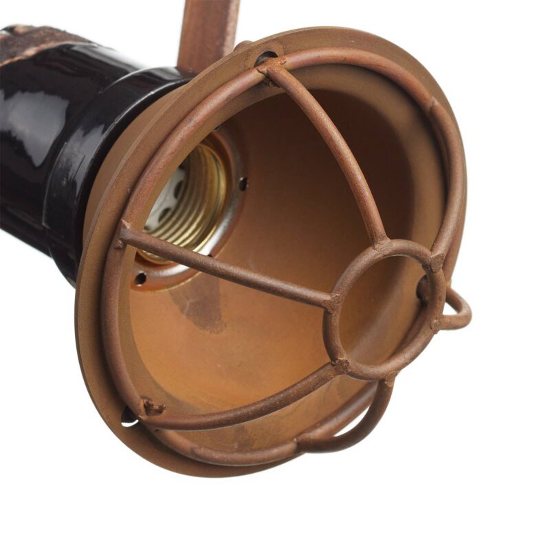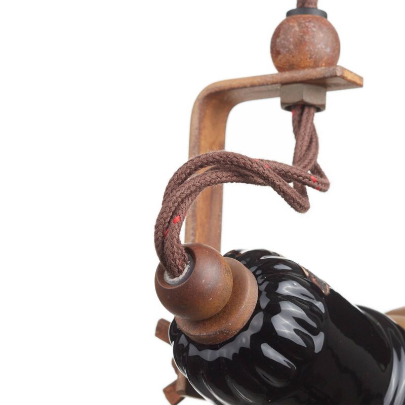 Závesné svietidlo C1660 / 1 vyrobené z keramiky a kovu s klietkou S touto prívesnou lampou ide vinobranie staromódneho laku a hrdzavohnedé časti ruka v ruke s prvkom otvorených skrutiek v priemyselnom štýle. tienidlo na lampu C1660 / 1 je vyrobené z keramiky a je opatrené kovovým klietkovým krytom z objímky žiarovky. Okrem toho sa na konzole dáždnika nachádzajú aj prvky z hrdzavohnedého kovu. Je zavesený na okrúhlom keramickom vrchlíku pomocou hnedého lana. – ručne vyrobené v Taliansku