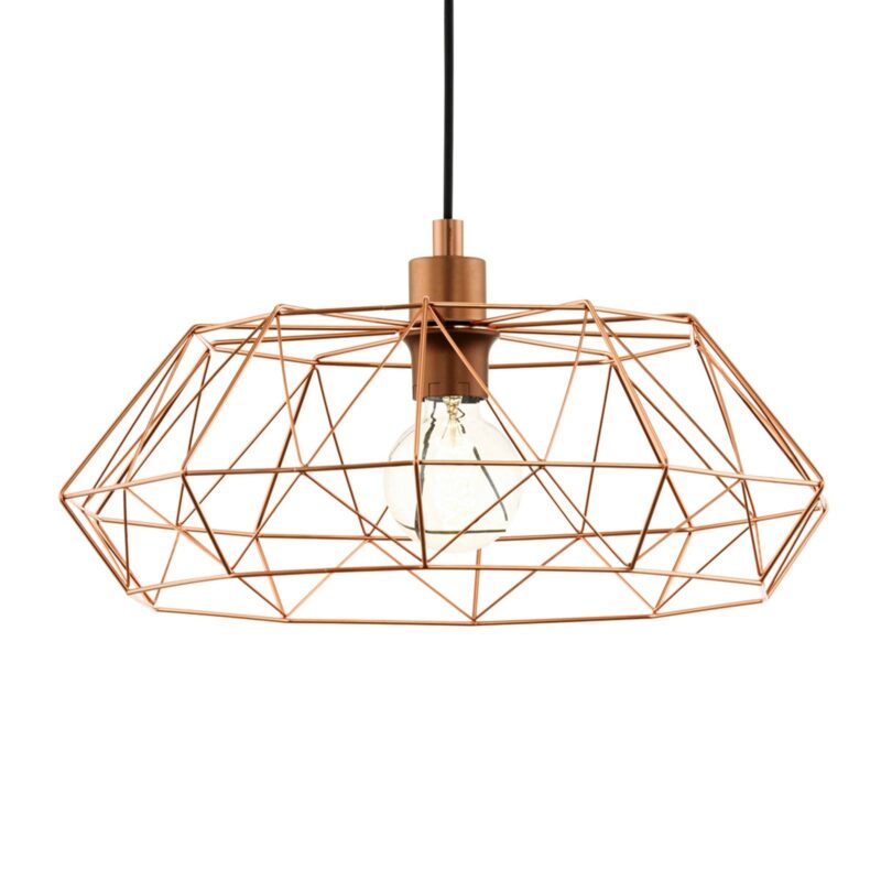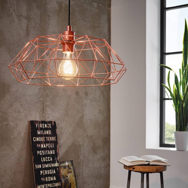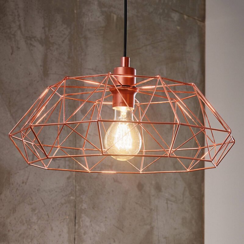 Dekoratívne závesné svietidlo Carlton 2 s lesklým medeným povrchom Závesné svietidlo Carlton 2 s kovovým filigránovým tienidlom vnesie industriálny šarm do každej obývačky alebo jedálne. Vďaka lesklej medenej povrchovej úprave však v sebe nesie aj istú eleganciu, takže sa z neho stáva zdroj svetla s mnohými aspektmi. Vzhľadom na to, že zdroj svetla je v tieni takmer úplne viditeľný, zohráva aj on významnú úlohu vo vzhľade. Preto by sa malo starostlivo vybrať, ktoré svietidlo sa má v svietidle použiť. Ako príslušenstvo sú k dispozícii dekoratívne svetelné zdroje, napríklad guľové lampy.
