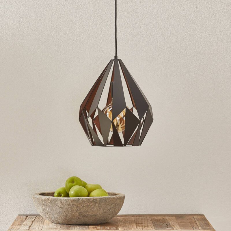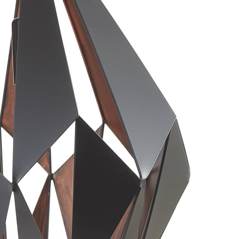 Závesné svietidlo Carlton s extravagantným tienidlom – čierno-medené Závesné svietidlo Carlton je v miestnosti skutočným pútačom pozornosti. Oceľový odtieň vizuálne pripomína drahokam, ktorý žiari dvoma farbami. S týmto pútavým závesným svietidlom možno individuálne navrhnúť a vybaviť atraktívnym celkovým osvetlením najmä miestnosti vo vintage vzhľade.