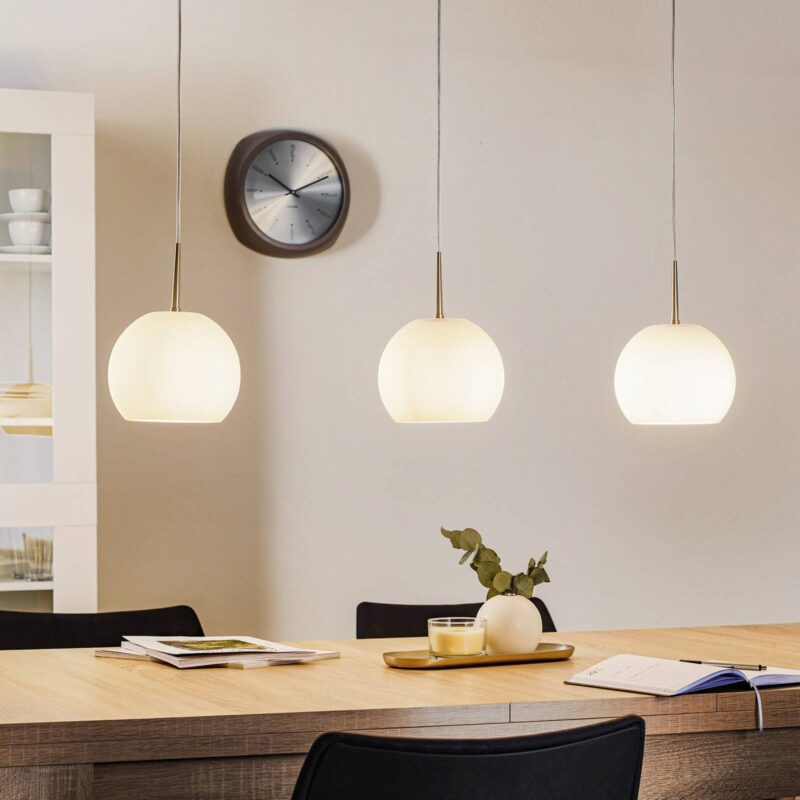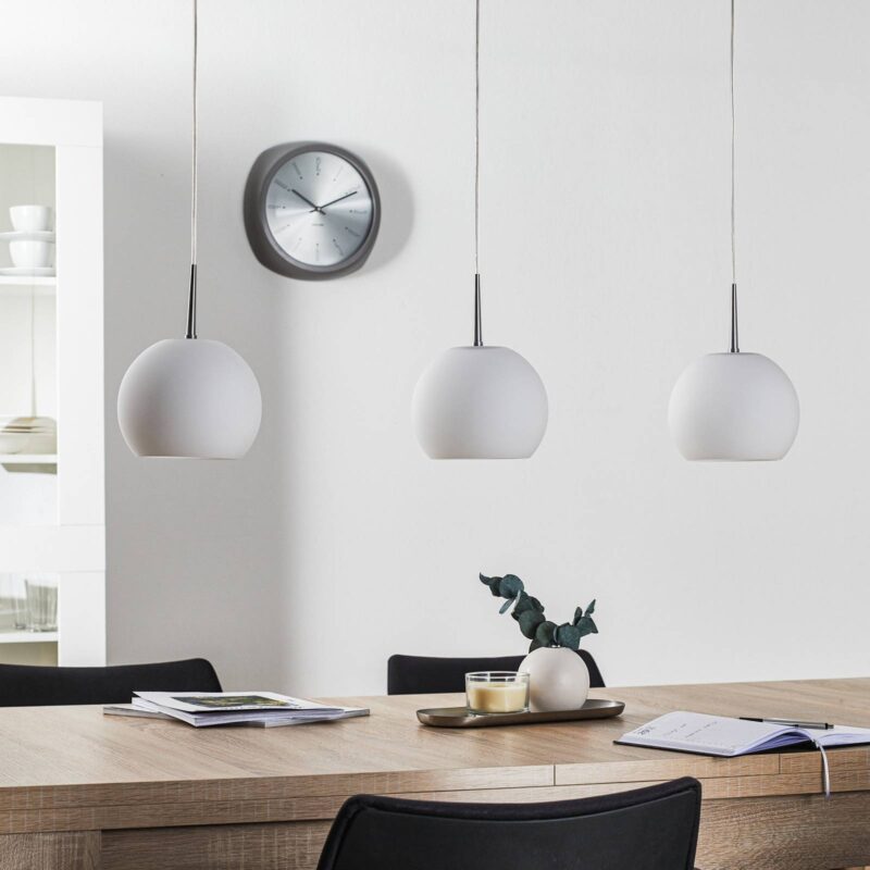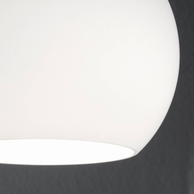 Závesná lampa BALL. Štýlové riešenie klasickým spôsobom. Dizajnom závesnej lampy BALL je dokonalý jednoduchý tvar. Lampa je navrhnutá ako okrúhle sklené teleso – fúkané ručne, ako si to vyžaduje tradícia. Už len samotným jemným základným tvarom dokáže táto závesná lampa dotvoriť priestor. Pretože tento tvar umožňuje vynikajúce celkové osvetlenie. Používanie brúseného hliníka na montážne komponenty pridáva ďalší vysokokvalitný materiál. Tento výrobca ponúka svietidlá made in Germany so vysokým štandardom kvality vyrábané v manufaktúre na lampy, ktorá existuje od roku 1980. Osobitnou a opakujúcou sa charakteristickou črtou je používanie skla, ktoré je ručne fúkané podľa starej tradície a kovové povrchy tvorí väčšinou hliník, ktorý má ručnú povrchovú úpravu, aby získal svoj osobitý vzhľad. V priebehu tohto výrobného procesu vznikajú lampy, ktoré pôsobia stále nadčasovo a majú veľmi individuálny charakter.