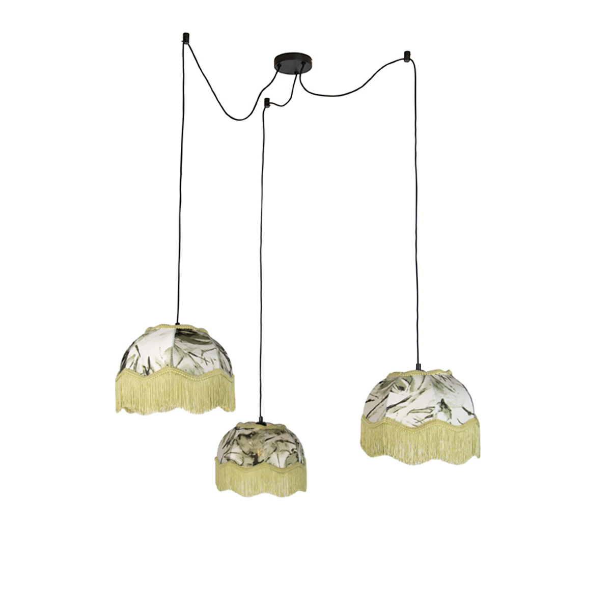 Hravá, elegantná a plná charakteru: závesná lampa Cava prináša do vášho interiéru jedinečnú kombináciu klasického dizajnu a teplej atmosféry. Tri závesné tienidlá s rafinovaným motívom listov a jemnou strapcovou hranou vytvárajú očarujúci, takmer bohémsky vzhľad, ktorý okamžite upúta pozornosť. Vďaka bielemu interiéru sa svetlo krásne odráža a vytvára teplú a príjemnú atmosféru nad jedálenským stolom alebo v obývacej izbe. Čierne detaily dodávajú celku štýlový kontrast a robia z tejto lampy skutočný pútač pozornosti bez toho, aby bola prehnaná. Rôzne výšky zavesenia vám umožňujú vytvoriť hravý a dynamický svetelný obraz, ktorý sa dokonale hodí do interiéru s charakterom. Nechajte svoj priestor zažiariť s touto špeciálnou závesnou lampou a dodajte teplo, atmosféru a osobnosť v jednom kroku.