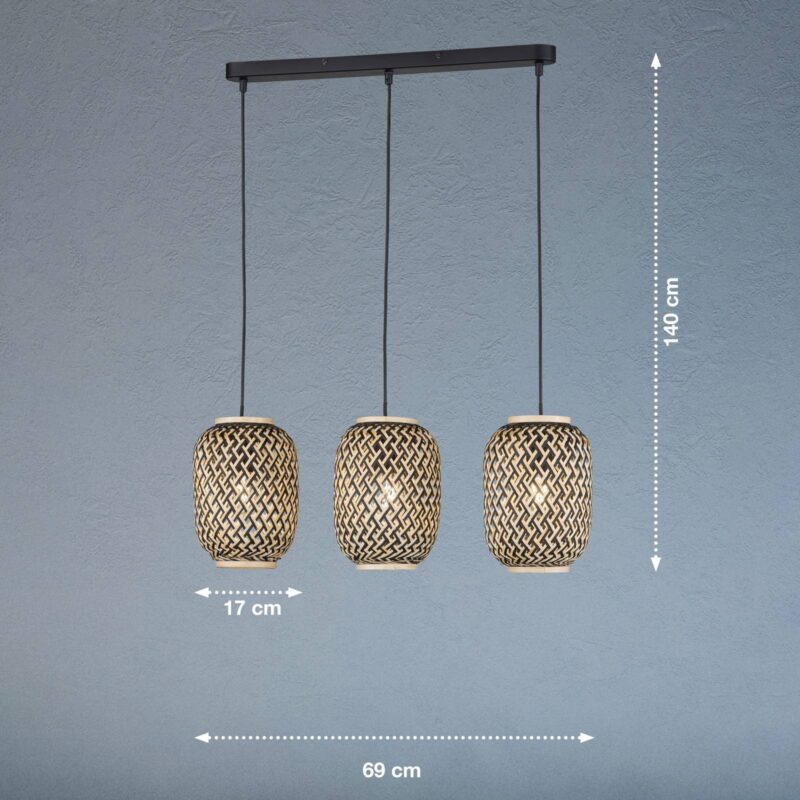 Závesná lampa Čmeliak z bambusu, 3-pl.