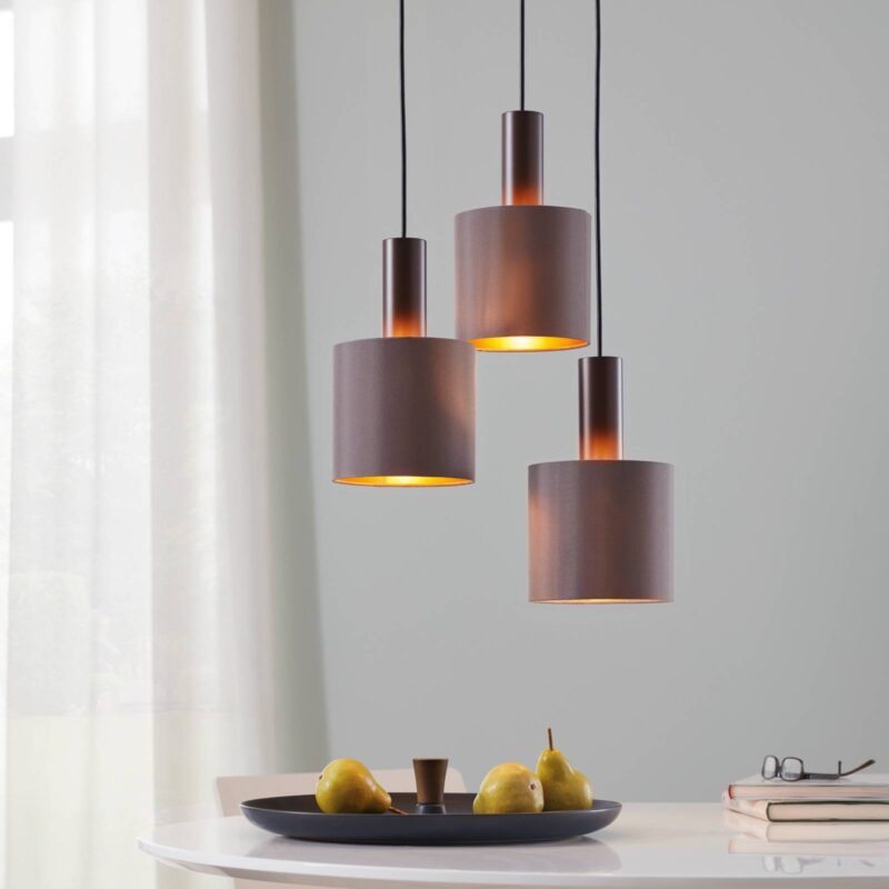 Závesná lampa Concessa 3-pl. cappuccino/zlatá