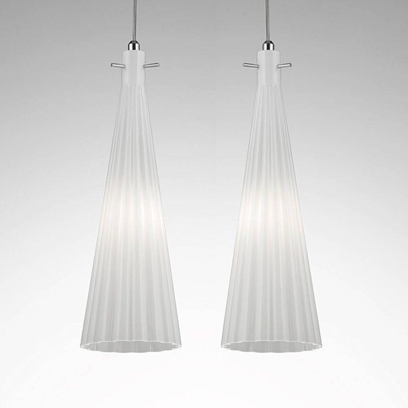 Dvojsvetelné závesné svietidlo Costa Rica z Talianska Závesné svietidlo Costa Rica je vďaka svojmu elegantnému a modernému dizajnu skutočným pútačom pozornosti nad jedálenským stolom alebo pultom. Má dve úzke tienidlá z rebrovaného skla, ktoré sa smerom dole rozširujú ako lievik. Sklo je fúkané ústami, a preto má sotva badateľné odchýlky, vďaka čomu je každé tienidlo jedinečné. Vďaka priehľadnosti skleneného tienidla je viditeľný zdroj svetla, ktorý sa má použiť, preto sa tu odporúča vizuálne príťažlivý dizajn. Výrobca lampy sídli neďaleko Benátok a je známy svojimi výtvormi, ktoré spájajú tradičné sklárske umenie a moderný dizajn.