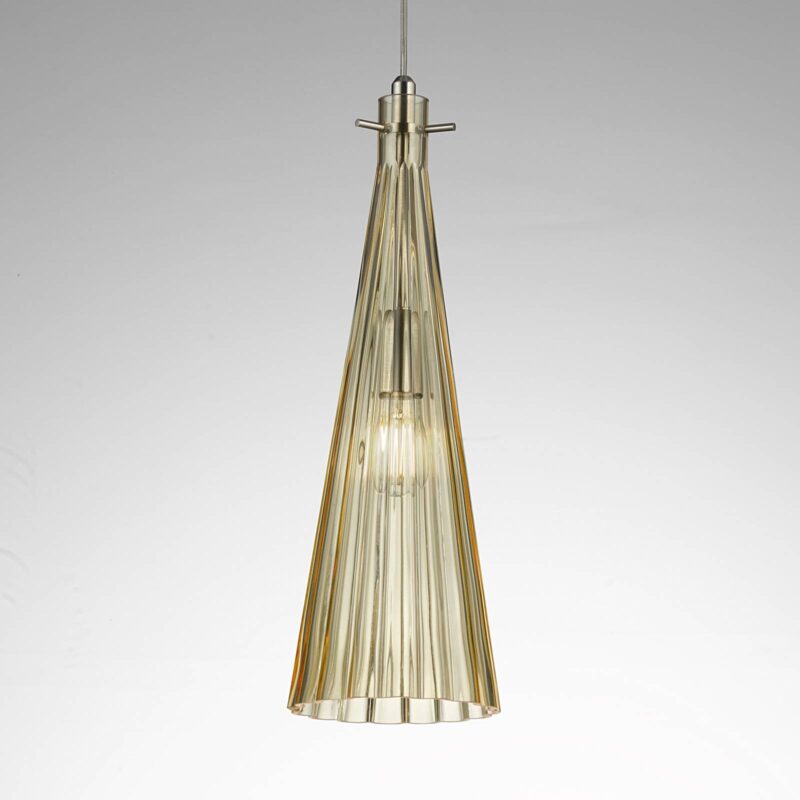 Závesné svietidlo Costa Rica z fúkaného skla Závesné svietidlo Costa Rica je vyrobené v Taliansku a vyznačuje sa elegantným a zároveň moderným dizajnom. Rýhované tienidlo má štíhly lievikovitý tvar a je vyrobené z fúkaného skla. Sklo poskytuje mäkké rozloženie svetla, ktoré vytvára útulnú atmosféru v celej miestnosti. Tienidlo je pripevnené ku kovovému držiaku vo farbe niklu, ktorý je ukrytý pod sklom. Costa Rica je k dispozícii v rôznych farbách, a preto sa dá kombinovať s rôznymi farebnými schémami. Vďaka priehľadnosti skla sú vhodné najmä vizuálne atraktívne svetelné zdroje, napríklad žiarovky.