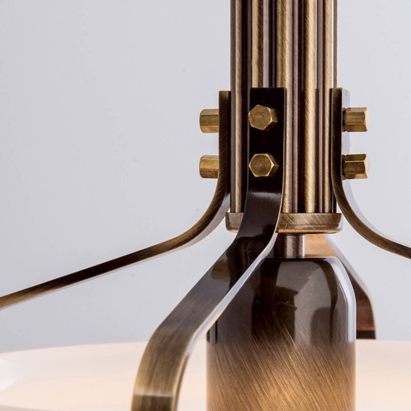 Ušľachtilé závesné svietidlo DELIA s teplým bielym svetlom Závesné svietidlo DELIA ponúka kombináciu štruktúrovaného, viacúrovňovo tvarovaného stropného držiaka tvoreného viacerými vzperami a skleneného tienidla s cibuľovitým tvarom. Opálové sklo s matným povrchom umožňuje veľmi jasnú svietivosť a rovnako rozsiahly rozptyl v celej miestnosti. Ušľachtilý vzhľad mu dodáva ručne tieňovaný povrch so vzhľadom starej mosadze. Vďaka výške 45 cm a priemeru 35 cm je tento objekt pomerne kompaktný. Pomocou samostatného zariadenia sa jeho svetlo navyše dá stmiť, a tak prispôsobiť štruktúre priestoru a jeho osvetleniu. Svietidlo je kompatibilné s LED alebo energeticky úspornými žiarovkami so závitom E27.