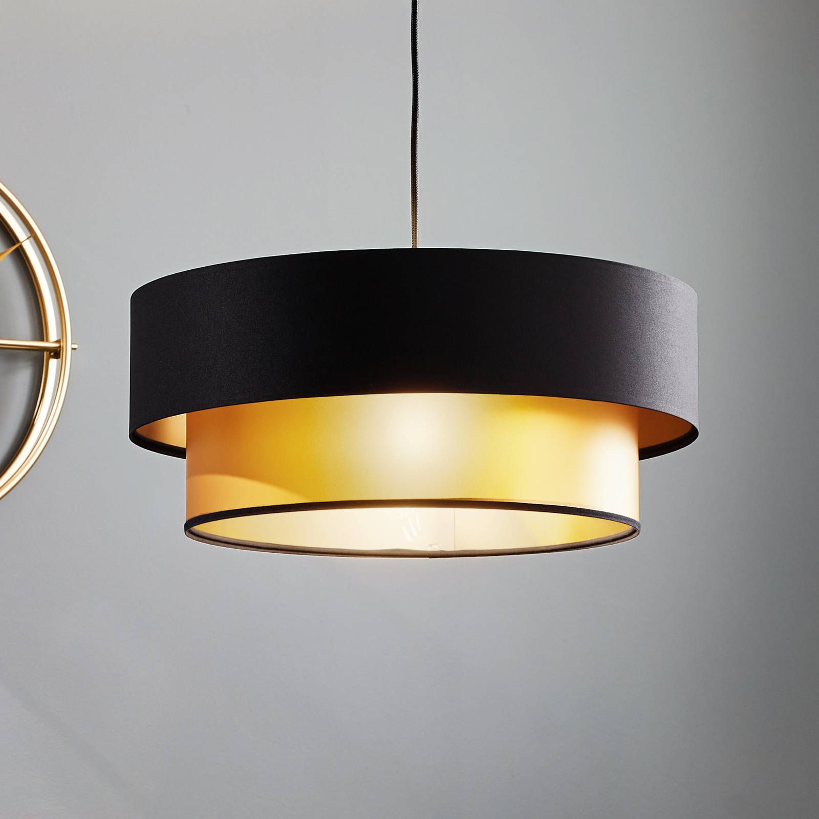 Domovská stránka » Katalóg » Závesná lampa Dorina, čierna/zlatá Ø 50 cm