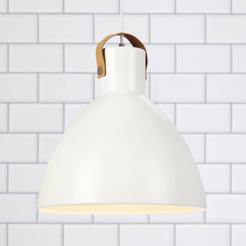 Eagle – závesné svietidlo s veľkým kovovým tienidlo na lampu Závesné svietidlo Eagle v škandinávskom štýle je ideálne ako opticky zdržanlivý priamy zdroj svetla nad obývacou izbou alebo jedálenským stolom. Jednoduché kovové tienidlo s kupolou s valcovým horným koncom je farebne doplnené textilným káblom. Kožený slučka na tienidlo na lampu poskytuje osviežujúci prvok.