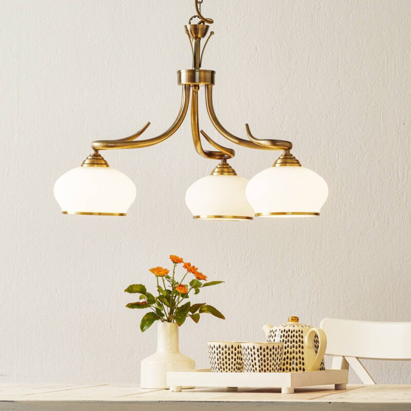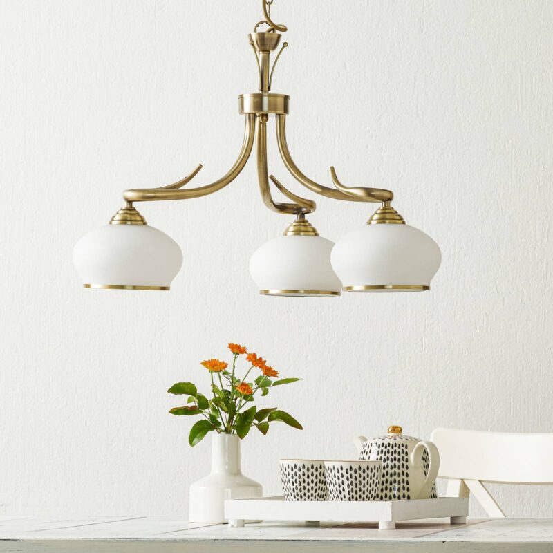 Závesné svietidlo Elvira s piatimi žiarovkami v štýle starej mosadze Táto lampa je dieťaťom dvoch svetov, a tak spája klasický dizajn s modernými detailmi. Výsledok je pôsobivý a dá sa vidieť. Závesné svietidlo Elvira zaujme svojou vysoko kvalitnou konštrukciou a sklenenými tienidlami s hodvábne matným povrchom. Toto svetlo sa môže používať mnohými spôsobmi a je príťažlivým doplnkom.