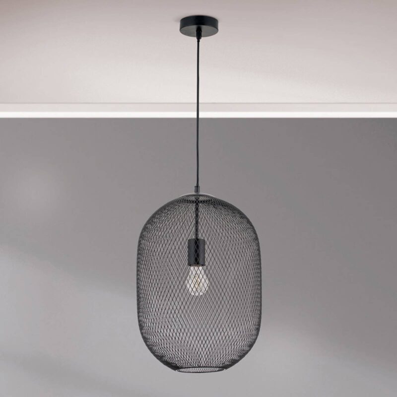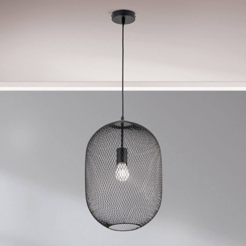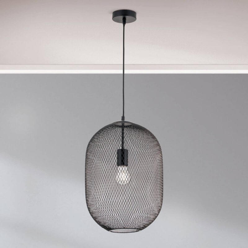 Závesné svietidlo Georgina s tienidlom v čiernej klietke Cibuľové závesné svetlo Georgina je pokryté jemnou kovovou sieťovinou. To umožňuje jasný výhľad na zdroj svetla. Čierna farba a zaoblený tvar pôsobia jednoducho, ale zároveň moderne. Preto sa perfektne hodí k ľahkým stenám, vďaka čomu vyzerá klietka ešte efektívnejšie. Podlhovastá klietková clona umožňuje Georgine nielen používať svetelné zdroje v tvare hrušky, ale sú tu veľmi vhodné aj predĺžené žiarovky a žiarovky. V takom prípade sa odporúčajú najmä žiarovky s vláknovým vzhľadom, ktoré vytvárajú idylickú atmosféru.