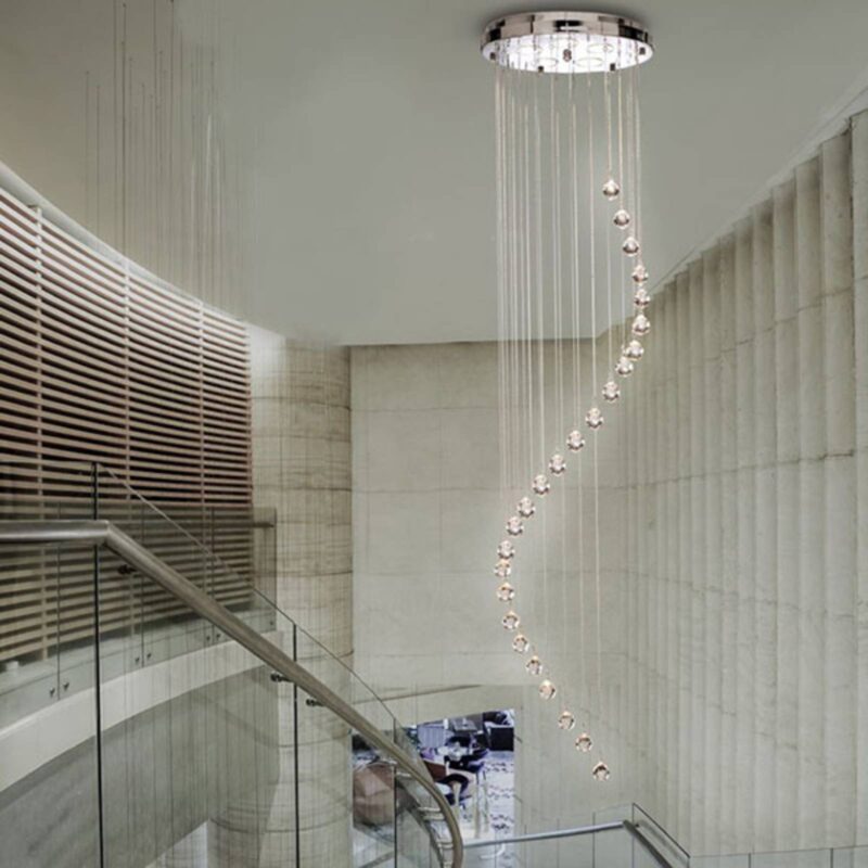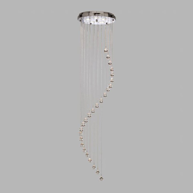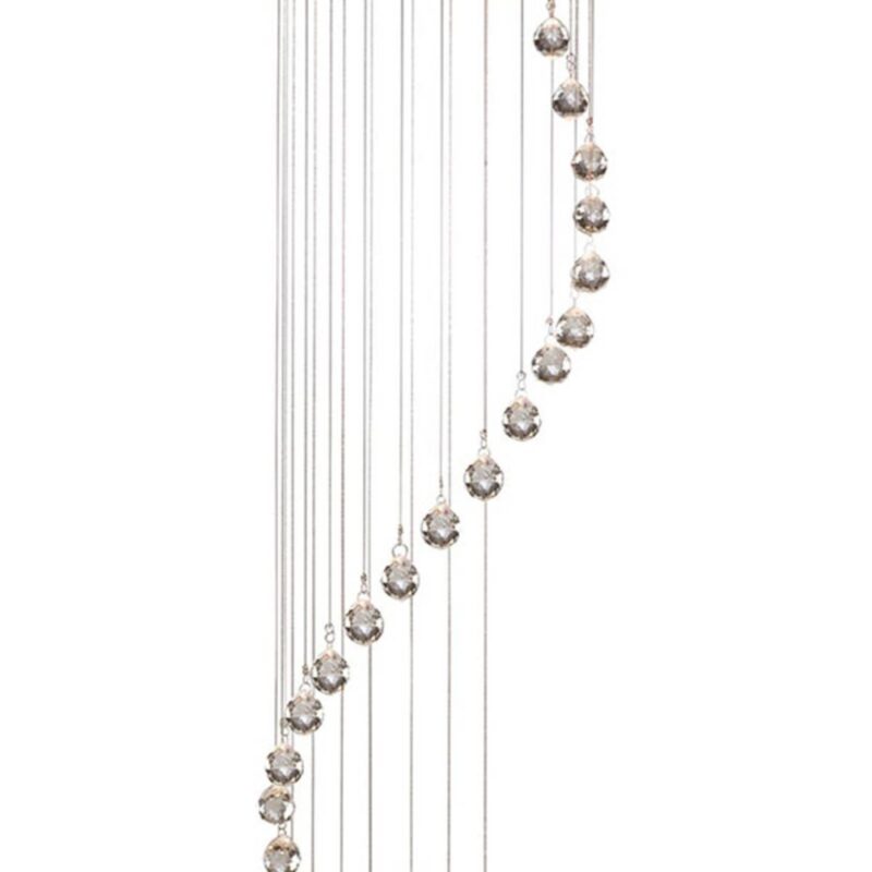 Šumivé závesné svietidlo Predsieň s krištáľovým závesom Závesné svietidlo do predsiene je vyrobené z lesklého chrómu a je vybavené piatimi žiarovkami GU10. Jeho zvláštnosťou sú dlhé pramene, ktoré na konci padajú s kryštálmi. Každý prameň má inú dĺžku, takže vzniká pôsobivý špirálovitý vzhľad. Závesné svietidlo Hallway ponúka pôsobivé osvetlenie vysokých schodísk alebo vstupných priestorov.