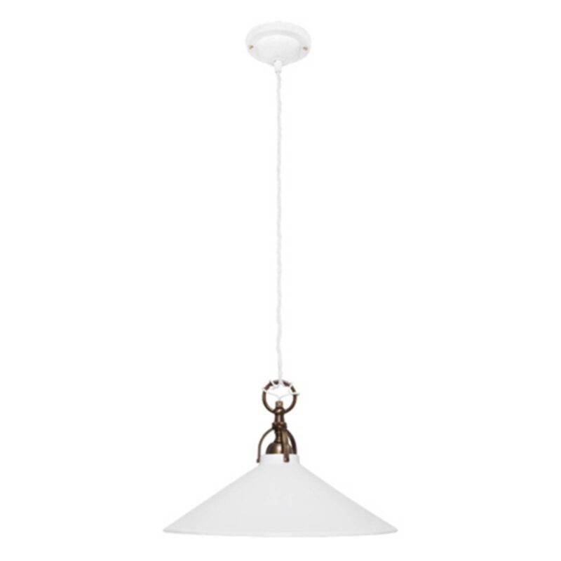 Závesná lampa Ike pôsobí rustikálnym dojmomTáto závesná lampa patrí do série Ike. Tienidlo z keramiky je mimoriadne dobre zvýraznené a podčiarknuté jednotlivými prvkami z liatej mosadze. Závesné svietidlo Ike sa preto dá zakomponovať do mnohých štýlov interiéru a stane sa pútavým prvkom najmä nad obývacím alebo jedálenským stolom.