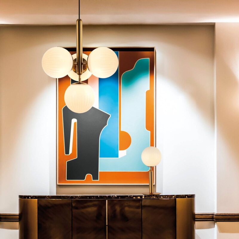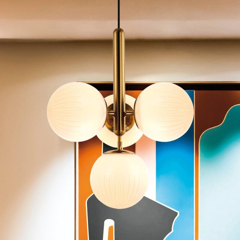 Závesná lampa Jolin s guľovými sklami, 4-plameňová