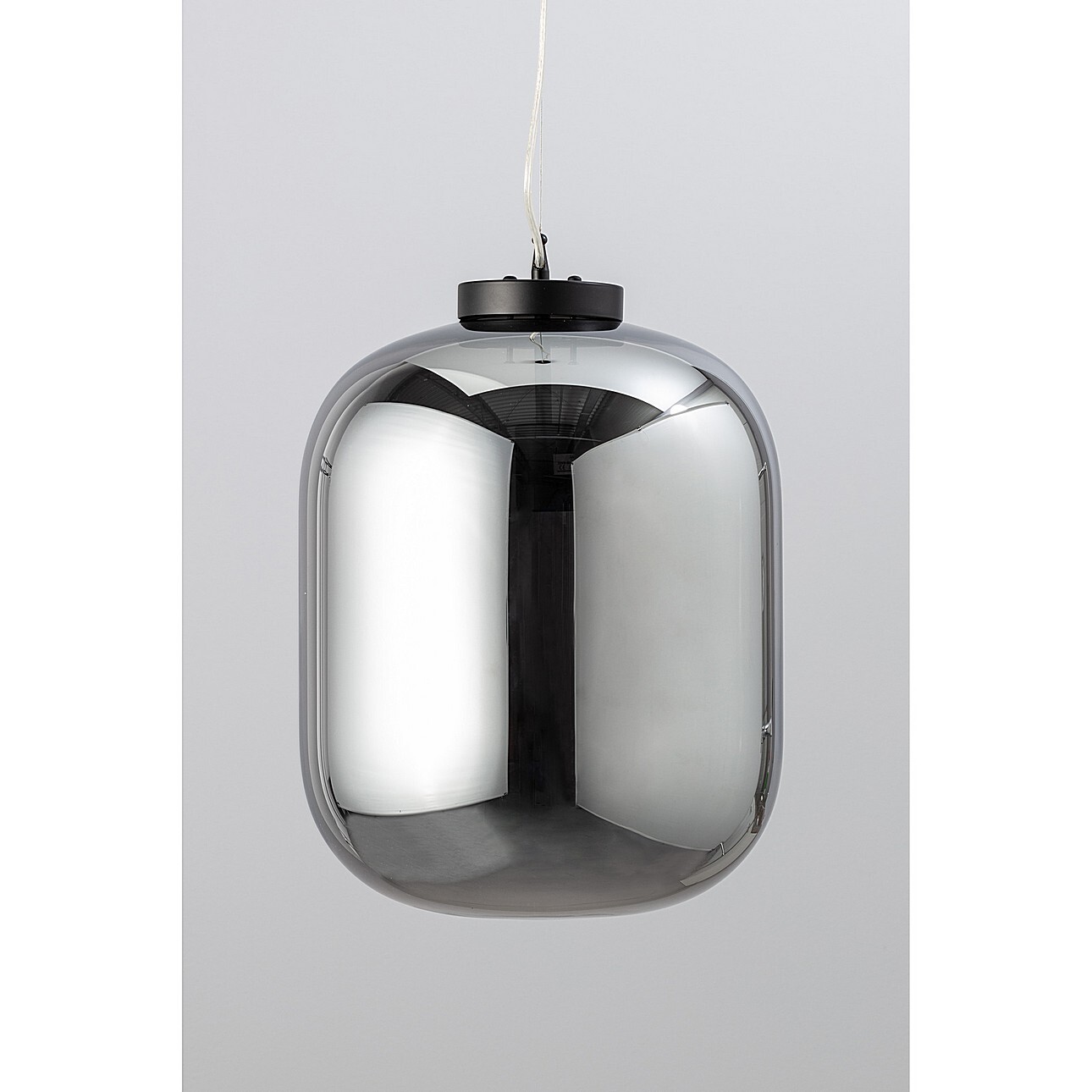 Originálna závesná lampa so zrkadlovým povrchom.Tienidlo je vyrobené z dymového skla. Krásne odráža svetlo a očarujúcim spôsobom osvetľuje interiér miestnosti.Jednoduchý a ľahký tvar lampy bez zbytočných vzorov dodá miestnosti elegantný a moderný dizajn.Ideálne sa hodí do moderných aj tradičných interiérov.Vhodné pre jednu žiarovku E27, max. 40 W.Rozmery: priemer tienidla 35 cm, výška tienidla 45 cm, dĺžka kábla približne 135 cm.