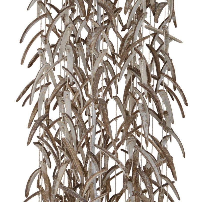 Závesná lampa z kokosu vyrobená z prírodných materiálov Závesné svietidlo Kokos zaujme vďaka svojmu mimoriadne krásnemu dizajnu, ktorý vnáša do vášho domova malý sviatočný šmrnc. Svietidlo sa skladá z voľne sa pohybujúcich prvkov, ktoré sú pripevnené k krúžku z ratanu. Tieto prvky sú prevzaté priamo z prírody, pretože boli vyrobené z pravého kokosu. Svetelný zdroj je v strede, takže prvky sú osvetlené zozadu. Tak vznikne nádherná hra tieňov, ktorú vidno na stenách. Vďaka týmto obzvlášť skvelým okamihom svetla vytvára lampa útulnú atmosféru, s ktorou si nájde ideálne miesto v obývacej izbe.