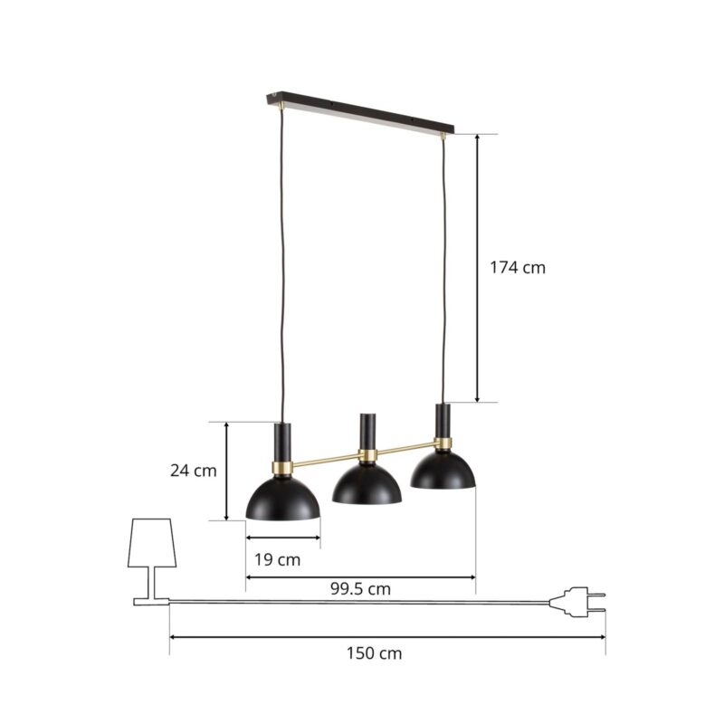 Závesná lampa Larry, tri svetlá, čierno-mosadzná