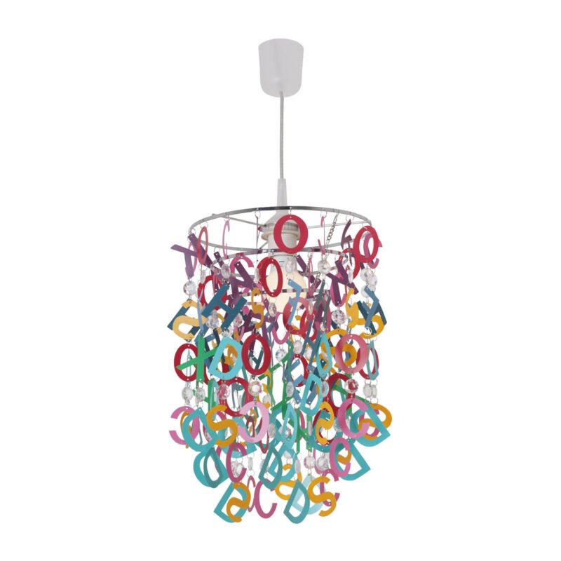 Závesná lampa Letterly s farebnými písmenami pre krásne chvíle svetla Detské prívesné svietidlo Letterly je ideálne na prvý hravý kontakt s písmenami. Mnoho farebných plastových prvkov je pripevnených na kovovom krúžku a môžu potom voľne visieť nadol. Vďaka hojdacím písmenám vyzerá lampa hravo a veselo. Svetelný zdroj je umiestnený v strede tak, aby písmená vrhali očarujúce tiene na strop a steny. Tieto krásne okamihy svetla vytvárajú útulnú atmosféru a prinášajú zábavu do škôlky.