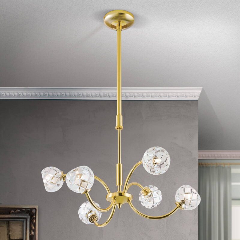Závesná lampa Maderno olovnatý krištáľ zlato 51cm