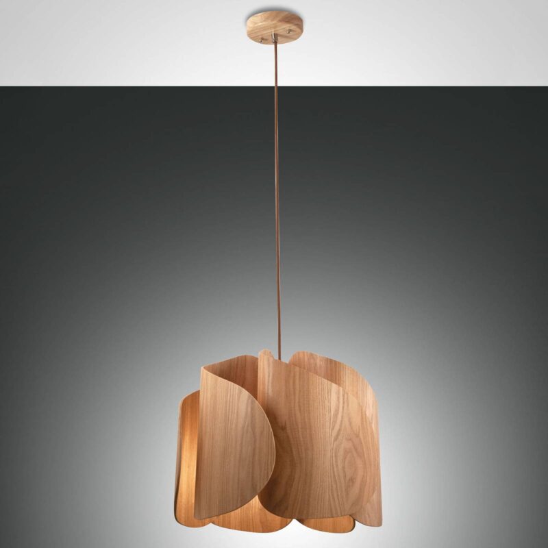 Závesná lampa Pevero jaseňové drevo zakrivený tvar