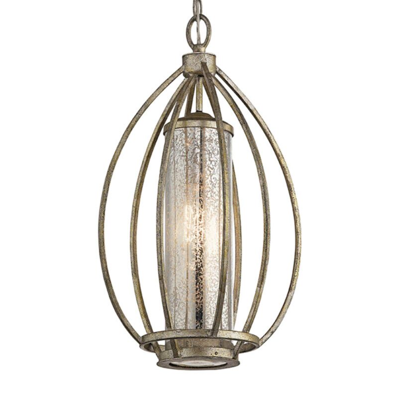Závesné svietidlo Rosalie so skleneným zdrojom svetla Špeciálna povrchová úprava zlatých a strieborných tónov, pomocou ktorej boli spracované kovové časti závesnej lampy Rosalie, sa nazýva povrchová úprava rýdze zlato. Dodáva tomuto estetickému prívesku v dizajne Williamsburg elegantný vkus. Stredom lampy je sklenený prvok vyrobený zo skla Mercury, ktorý vďaka svojej dekoratívnej štruktúre dodáva svetlu vyžarovanému lampou ukrytou za ním extravagantný lesk. Vybavené rustikálnym zavesením reťaze.
