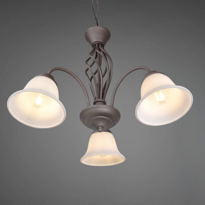 Trojsvetelné závesné svietidlo Rustica z kovu vo farbe hrdze Závesné svietidlo Rustica je vybavené tromi sklenenými tienidlami a je vyrobené z kovu hrdzavej farby. Vyzerá obzvlášť dobre nad obývacím stolom alebo jedálenským stolom, ale je vhodný aj ako zdroj svetla v kuchyni. Svojím dizajnom obzvlášť vyzdvihuje interiéry, ktoré majú starožitnú alebo rustikálnu atmosféru, alebo tiež obytné prostredie zariadené v štýle vidieckeho domu.