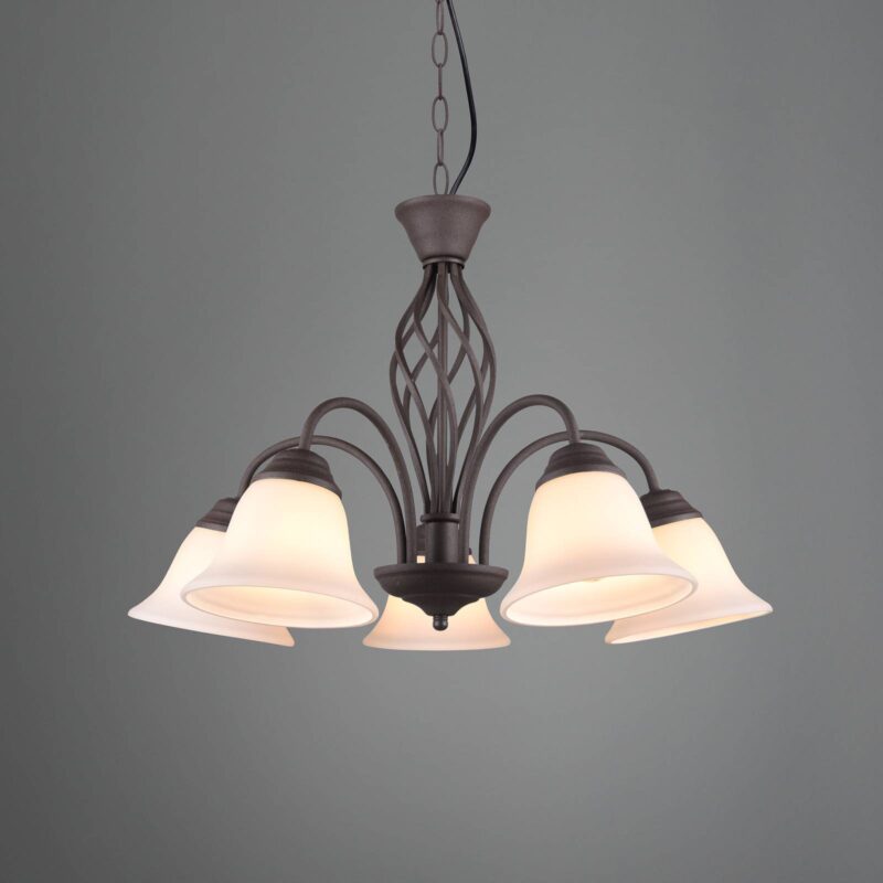 Päťsvetelné závesné svietidlo Rustica z kovu Závesné svietidlo Rustica je vyrobené z kovu hrdzavej farby a má päť sklenených tienidiel. Keďže svetlo vyžaruje smerom k podlahe, svietidlo Rustica je ideálne na osvetlenie jedálenského priestoru alebo stola v obývacej izbe, ale možno ho použiť napríklad aj ako atraktívne kuchynské svietidlo. Vďaka svojmu dizajnu sa dá mimoriadne dobre integrovať do obytných priestorov zariadených v starožitnom, rustikálnom alebo vidieckom štýle.