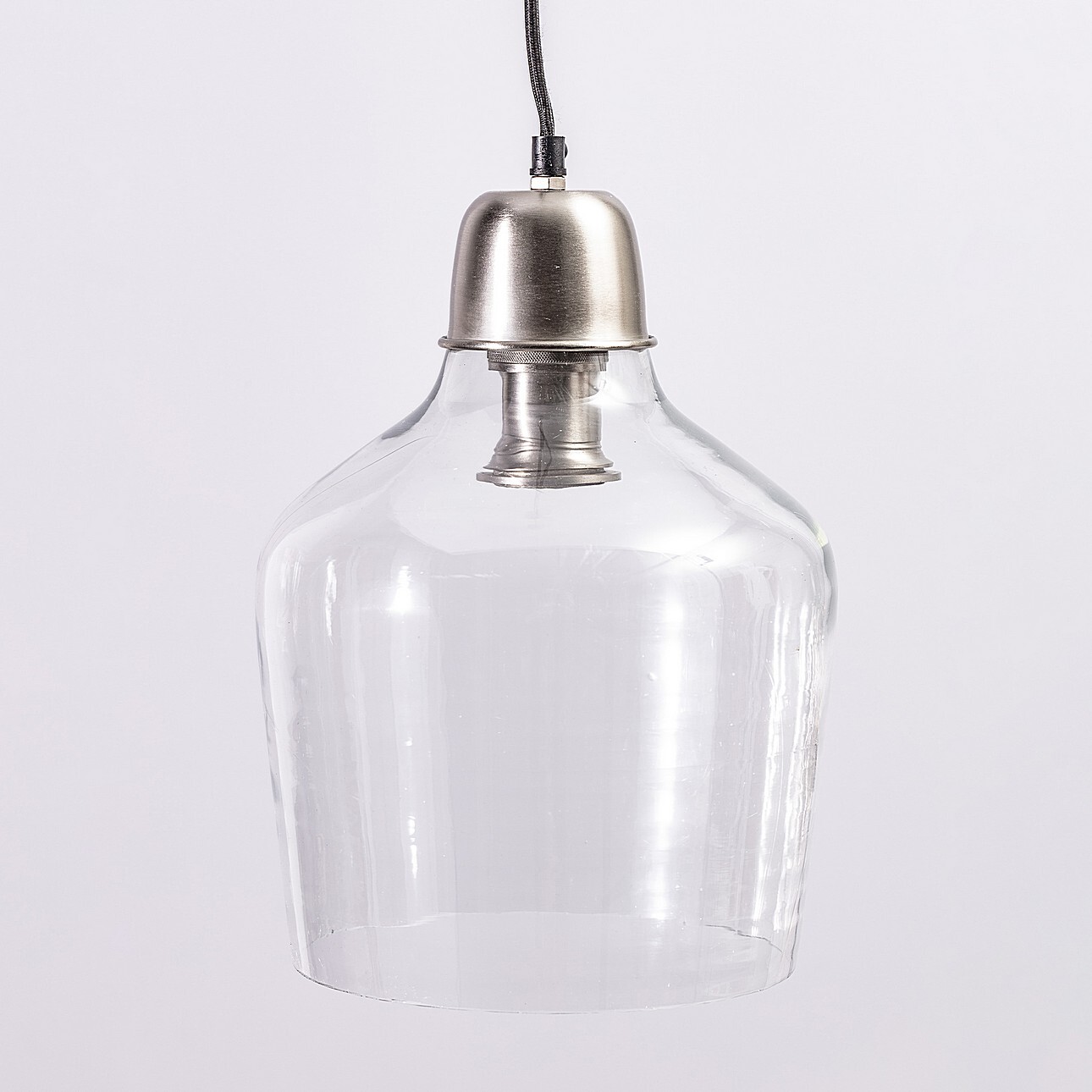 Závesné svietidlo, tienidlo z číreho skla, závit E27 z lesklého kovuPodrobnosti o dizajne – pozri obrázkyRozmery priemer tienidla 23 cm, výška tienidla 35 cm, celková dĺžka max. 190 cm, dĺžka kábla 152 cm