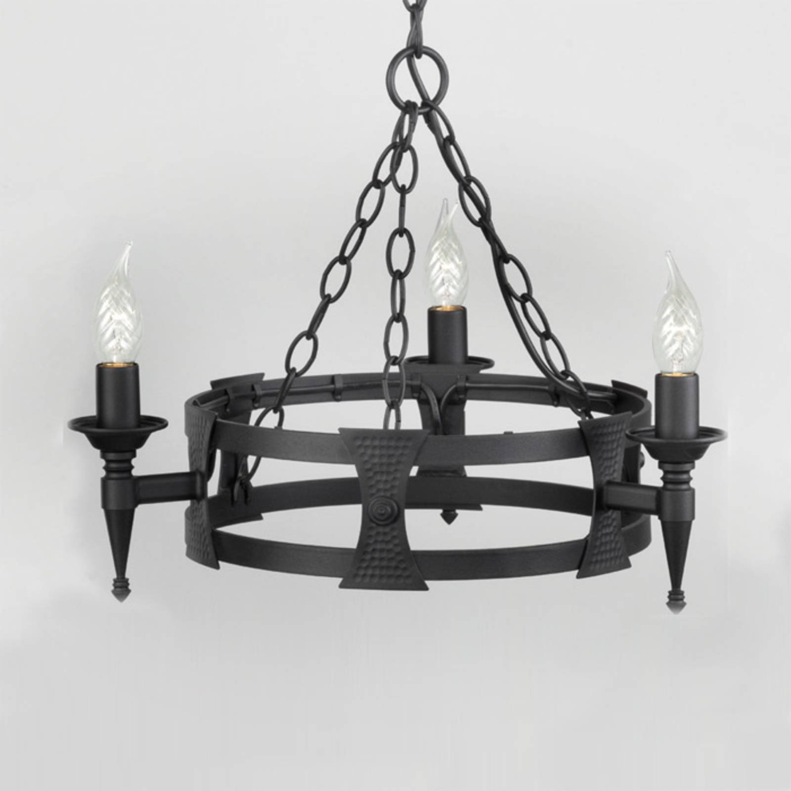 Spracovanie kovov veľmi stredovekým spôsobom: závesná lampa z tepaného železa Saxon pre štýlové stredoveké prostredie S touto závesnou lampou sa tradičné a moderné remeselné metódy spojili a vytvorili produkt, ktorý na jednej strane reprodukuje tvary minulosti pravdivým spôsobom a verne originálnym spôsobom a na druhej strane spĺňa moderné požiadavky na lampa. Samotná farba prispieva k historickému prostrediu v celom rozsahu; detaily tepaného železa dodávajú výrobku finálnu podobu. Pre moderný alebo historicky zariadený vidiecky dom, pre gastronómiu alebo hotelové oblasti so zodpovedajúcim prostredím alebo ako vizuálna špecialita v každej obývacej izbe: So Saxonom je stredovek na dosah – a rozsvieti sa. Vyrobené v Anglicku.