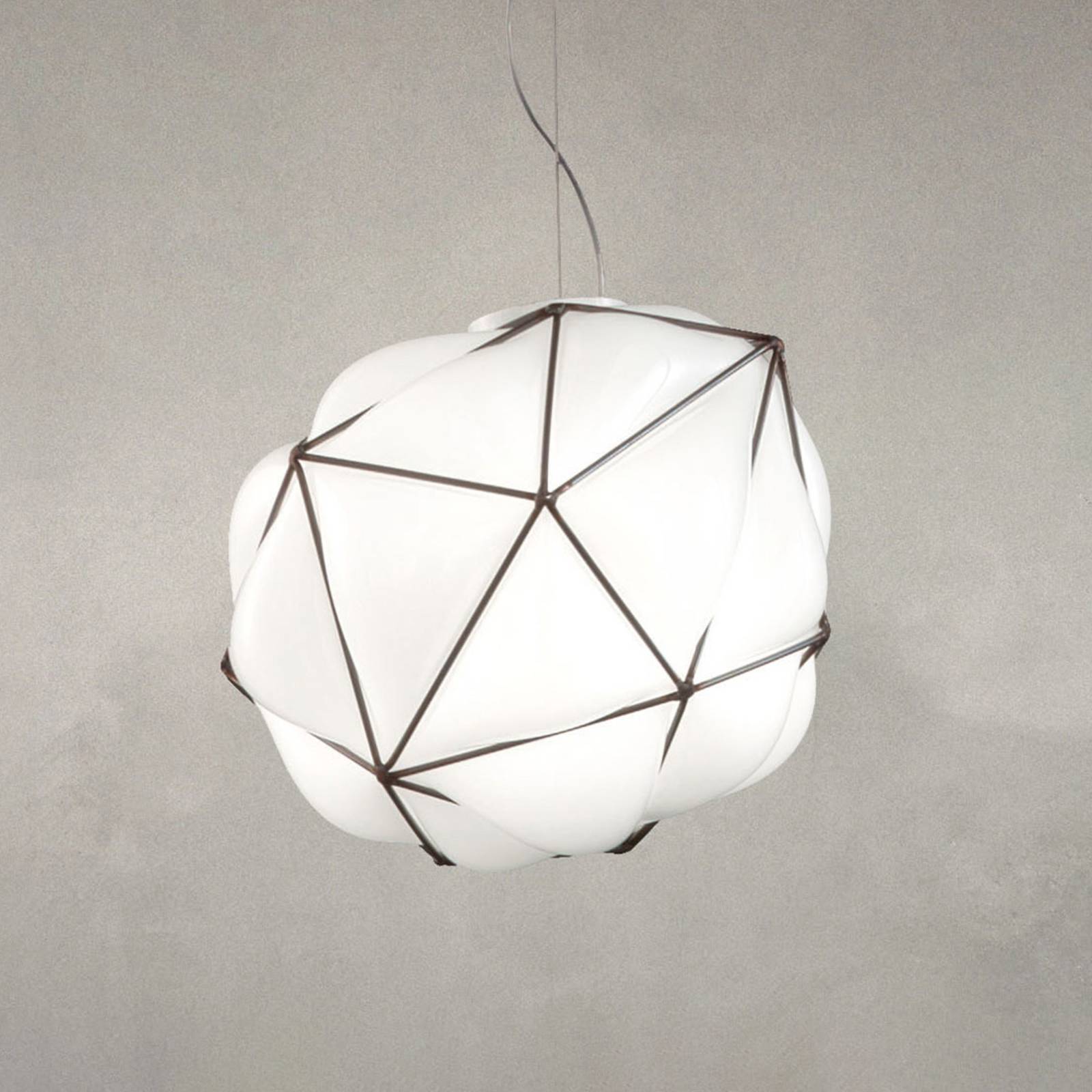 Jedinečne navrhnutá závesná lampa SemaiDvaja talianski dizajnéri Alberto Saggia & Valerio Sommella prišli s niečím veľmi výnimočným pre závesnú lampu Semai: Na vytvorenie skleneného tienidla, ktoré nemá obdobu, bolo použité ručne fúkané sklo, tu voľne vyfúknuté do kovovej klietky. Tento inovatívny prístup robí z každej závesnej lampy Semai nezameniteľný unikát. svetelný efekt lampy Semai je rovnako neporovnateľný ako jednotlivé kusy: biele sklo posiela svetlo do celej miestnosti, kde vzniká veľmi harmonické osvetlenie. ideálna závesná lampa na atmosférické osvetlenie moderných obytných priestorov. – s fúkaným, viacvrstvovým sklom