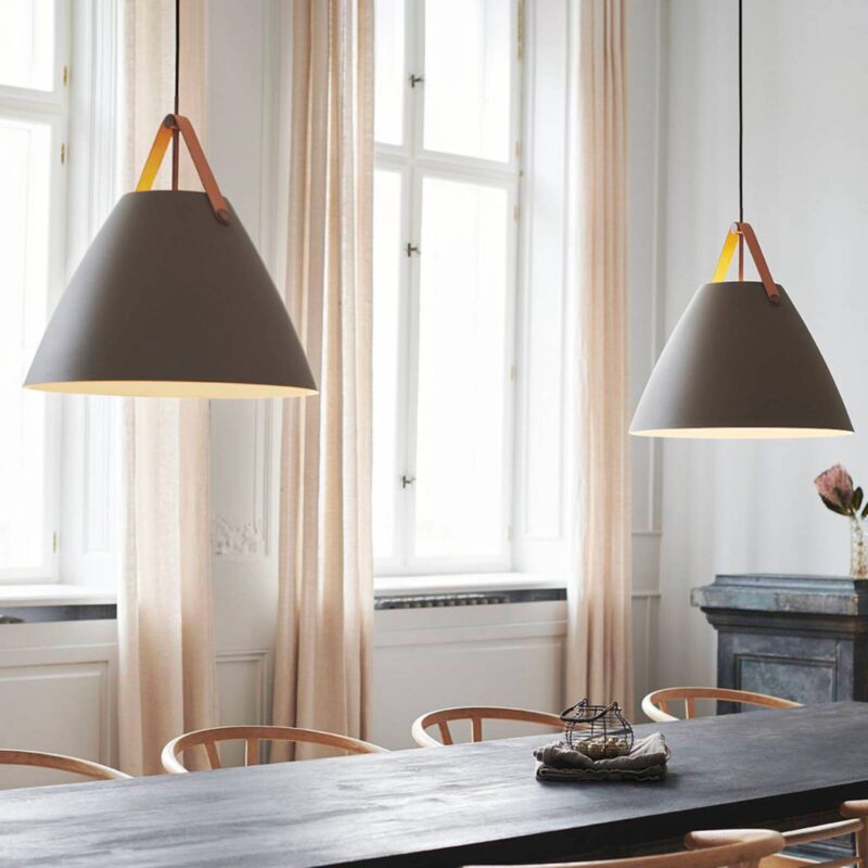 Remienok – závesné svietidlo s kužeľovým tienidlom a dekorom kože Monochromatické kovové tienidlo v tvare kužeľa, opatrené ozdobným očkom z ľahkej kože – závesná lampa Strap dosahuje vynikajúci efekt jednoduchými prostriedkami podľa kritérií škandinávskeho štýlu. Vzhľadom na štruktúru, ktorá je v spodnej časti otvorená, je remienok ideálny ako priamy zdroj svetla nad stolom v obývacej izbe a jedálni, ale aj v spoločenskej miestnosti. V závislosti na použitom svetelnom zdroji je možné remienok kombinovať s rôznymi štýlmi vybavenia a priestorovými podmienkami.