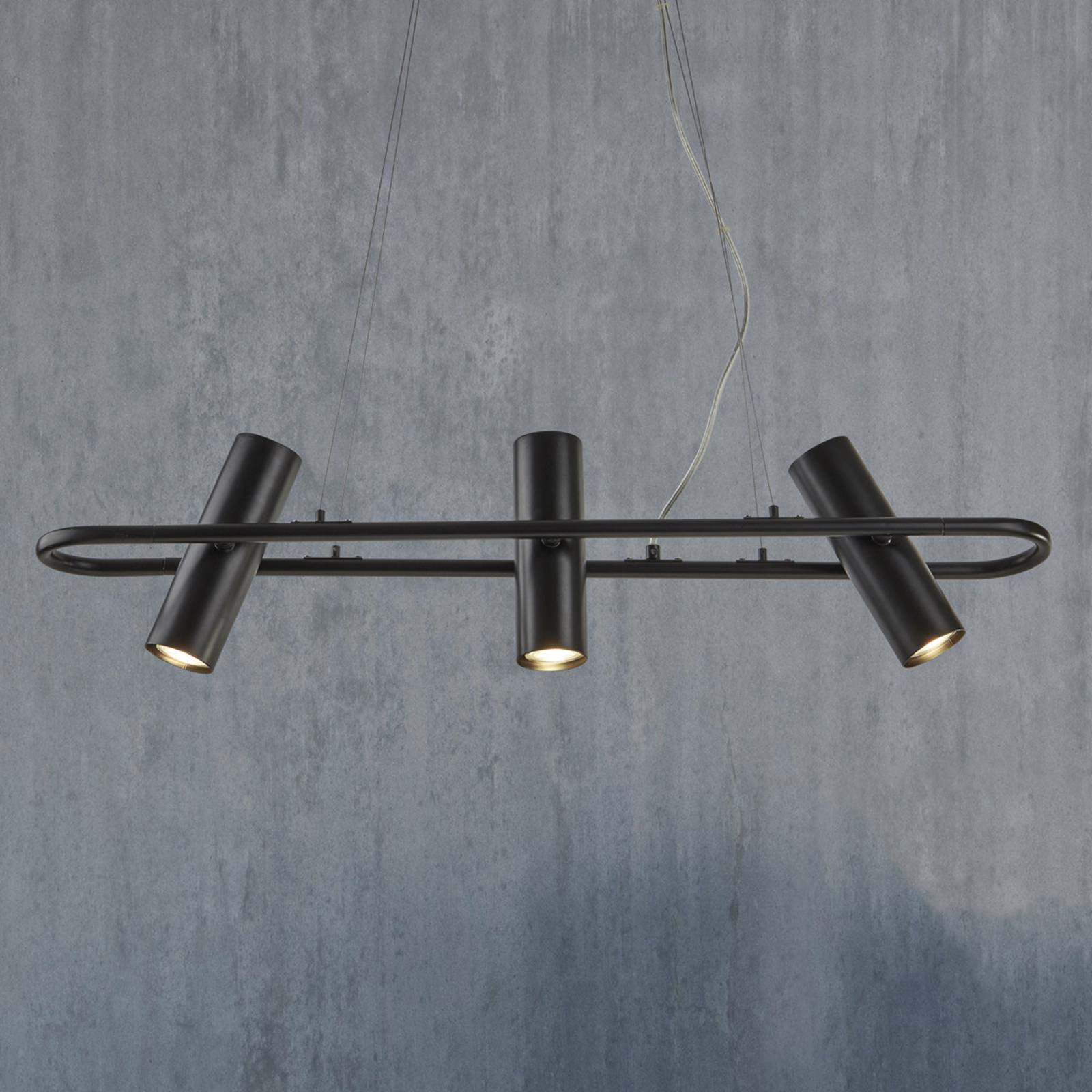 Závesná lampa Telescope v čiernej, 3-plameňová