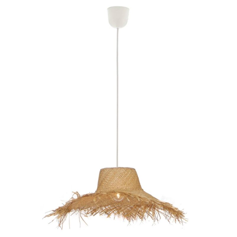 Osvetlený slamený klobúk – závesná lampa Tetra Neobvyklá a veľmi dekoratívna závesná lampa Tetra upúta pozornosť v každej miestnosti. Vyzerá, akoby sa žiarovka E27 na bielom závese jednoducho nasadila na slamený klobúk, ktorého okraj je silne ošúchaný. Svetlo vyžaruje smerom nadol a cez slamu vytvára zaujímavé svetelné efekty. Tetra je svietidlo pre každého milovníka prírody a zároveň ladí aj s moderným nábytkom. Prostredníctvom príslušenstva je k dispozícii zodpovedajúci svetelný zdroj.