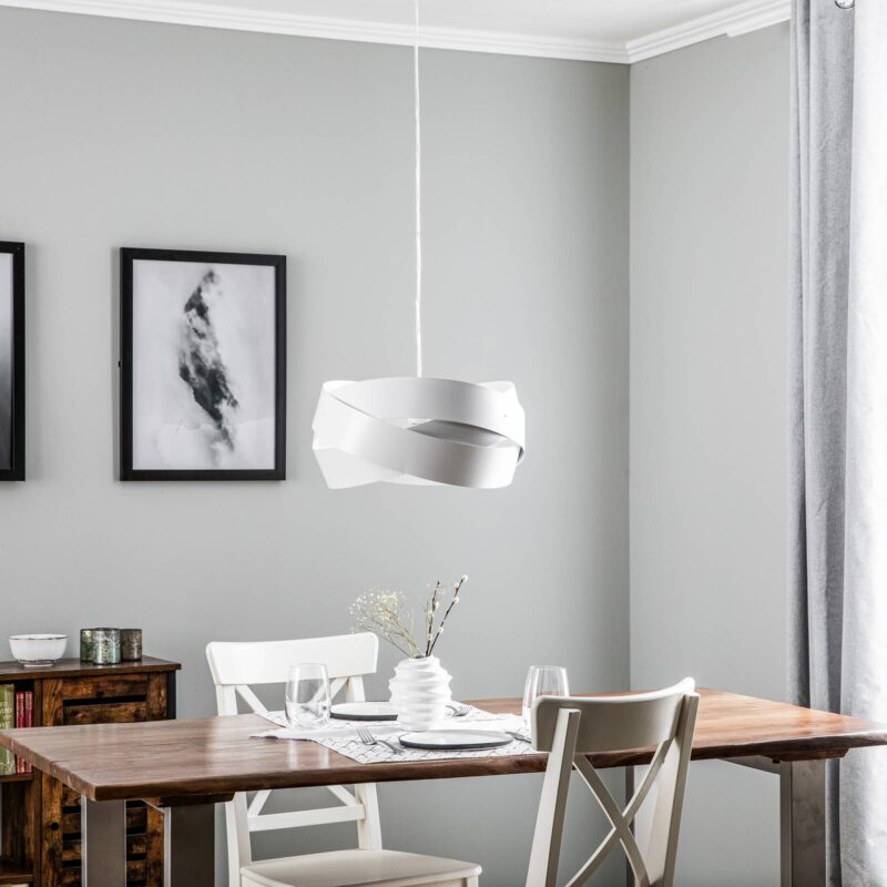 Kovové závesné svietidlo Tornado Dizajn tohto závesného svietidla spája nadčasovú eleganciu a moderný dizajn. Skladá sa z okrúhleho stropného baldachýnu a 100 cm dlhého závesu, ku ktorému je pripevnené tienidlo. Rovnako ako stropný baldachýn a tyč je aj tienidlo vyrobené z bieleho lakovaného kovu, ktorý dodáva celkovému vzhľadu istú ľahkosť. Závesné svietidlo je vhodné predovšetkým na osvetlenie stolov alebo pultov. Zdroj svetla, ktorý sa má použiť, je k dispozícii prostredníctvom príslušenstva.