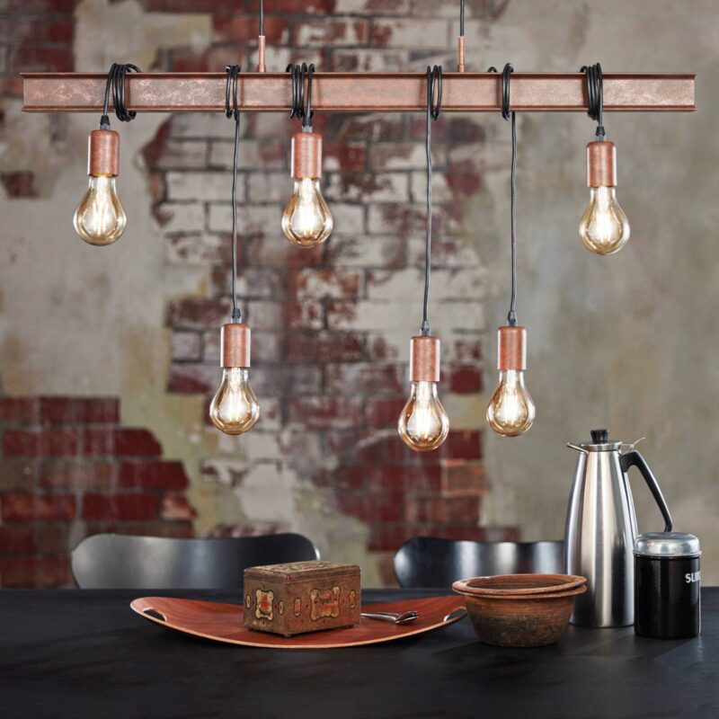 Závesné svietidlo Townshend 4 v hnedej farbe Závesné svietidlo Townshend 4 presviedča ako praktický zdroj svetla svojím jedinečným vzhľadom. Svietidlo nadchýna svojím mimoriadnym vzhľadom, ktorý upúta pozornosť v každej miestnosti. Svojím jednoduchým sfarbením možno svietidlo integrovať do mnohých interiérových štýlov, čím pekne dotvorí koncepciu osvetlenia vášho domova. Hnedé závesné svietidlo sa skladá z pozdĺžneho držiaka, ktoré opticky pripomína oceľový nosník, čím do vášho domova vnesie industriálny nádych. Okolo nosníka sa tiahnu viaceré tesne priliehavé káble, na ktorých visí dokopy šesť objímok so žiarovkami (nie sú súčasťou dodávky). Tak vzniká žiarivý osvetľovací dizajn, ktorý v plnej kráse vynikne najmä nad jedálenským stolom alebo kuchynským ostrovčekom.