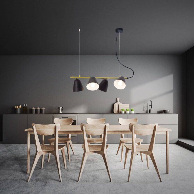 Závesná lampa Triton, čierna a zlatá, 4-plameňová
