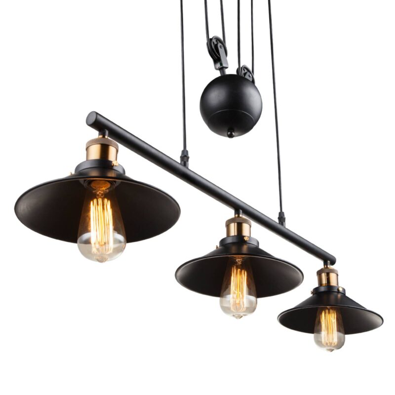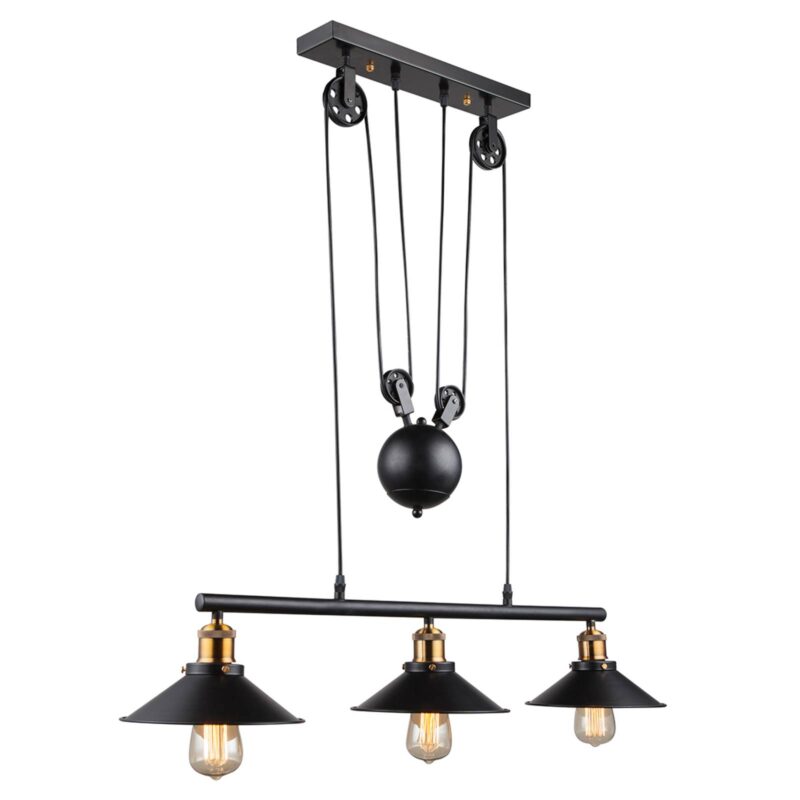 Nezvyčajné závesné svietidlo Viktor – s tromi zdrojmi svetla Závesné svietidlo Viktor s tromi zdrojmi svetla dotvára svojím štýlovým osvetlením priestory zariadené v industriálnom štýle, ktorý sa s obľubou využíva vo výrobných halách, či továrňach prebudovaných na obytné priestory. Osobitý prvok: výška závesnej časti svietidla Viktor sa nastavuje pomocou štyroch koliesok. Kedykoľvek tak možno meniť výšku svietidla od 90 cm do 160 cm. Tmavý povrch závesného svietidla z čierneho lakovaného kovu zjemňuje povrchová úprava objímok z antickej mosadze. Závesné svietidlo Viktor pôsobí mimoriadne štýlovo v prípade, keď sa v ňom použijú retrofitné žiarovky s vláknom (dostupné v časti s príslušenstvom).